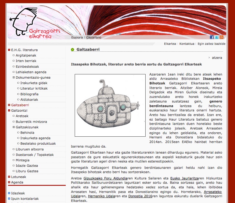 Galtzagorri Elkartea, Asociación de Literatura Infantil y Juvenil en lengua vasca, es otro colectivo que compartirá su experiencia educativa en nuestro congreso. Sus principales objetivos son fomentar la afición a la lectura de niños y jóvenes, y promover y dar a conocer la Literatura Infantil y Juvenil en lengua vasca. La sala “Itsaspeko Bihotzak” está diseñada y dirigida por Aitziber Alonso, Mireia Delgado y Miren Guillo para promover la afición por la lectura, la igualdad de género y la coeducación a partir de la literatura infantil en euskera. Los ponentes de este espacio para las experiencias locales serán Aitziber Alonso y Miren Guillo.